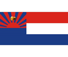 The Karen national flag consists of three main colors: red, blue, and white. On the top left corner is the traditional Karen frog drum to symbolize unity in the traditional Karen culture.